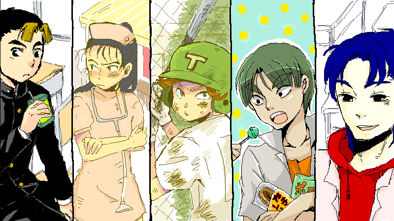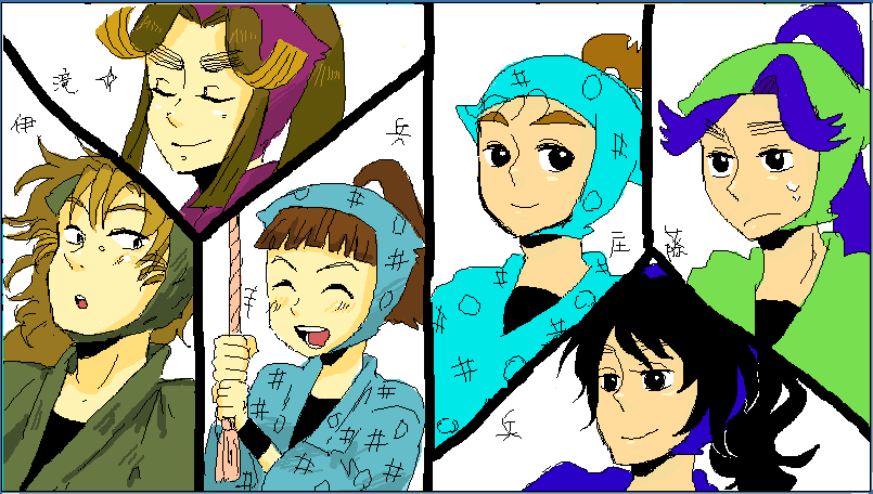 キャラは各自好きなキャラを書いた後アミダくじで5忍決めました。